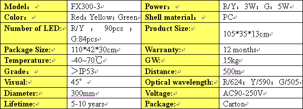 FX300-3-RYG three unit arrow combination LED traffic signal lamp,ultra-high brightness light-emitting diode chips AlInGaP and InGaN as a product of light, low power consumption, long life, maintaining a reasonable cost of the product.