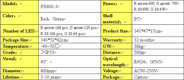 FX400-3-RG three units with full screen countdown combination of LED traffic lights,ultra-high brightness light-emitting diode chips AlInGaP and InGaN as a product of light, low power consumption, long life, maintaining a reasonable cost of the product.