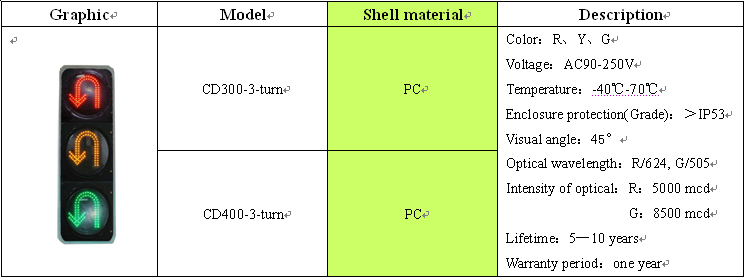CD400-3-turn LED lane traffic lights, generally used in toll stations, tunnels, ports, parking lot and other traffic road lights, With high efficiency, long life; high temperature resistant, resistance to vibration, low power consumption, moisture, dust Etc. features.