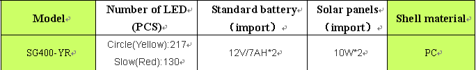 SG400-YR solar energy traffic warning lightsModel No.: