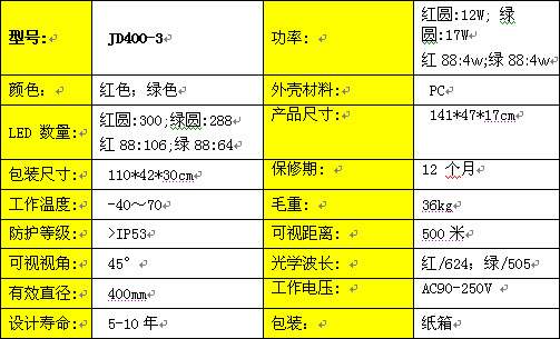 JD400-3-RG 三單元滿屏帶倒計時組合LED交通信號燈 采用超高亮度發光二極管芯片AlInGaP和InGaN作為產品的光源,低功耗,長壽命,維持產品合理成本。
